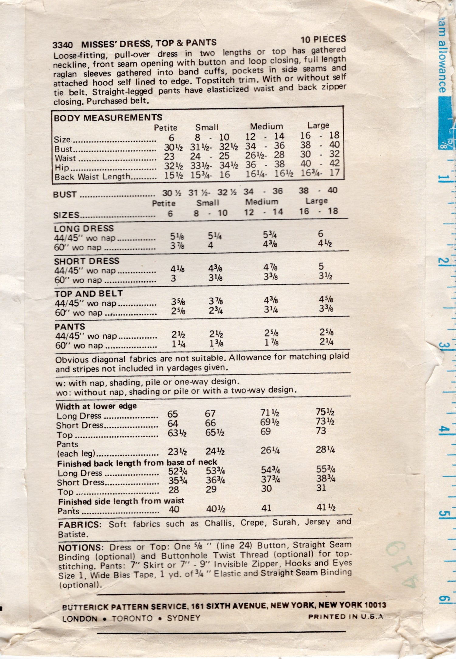 1970's Butterick by KENZO Pullover Top or Dress in Two Lengths and Pants Pattern - Bust 38-40" - No. 3340 is backordered and will ship as soon as it is back in stock.