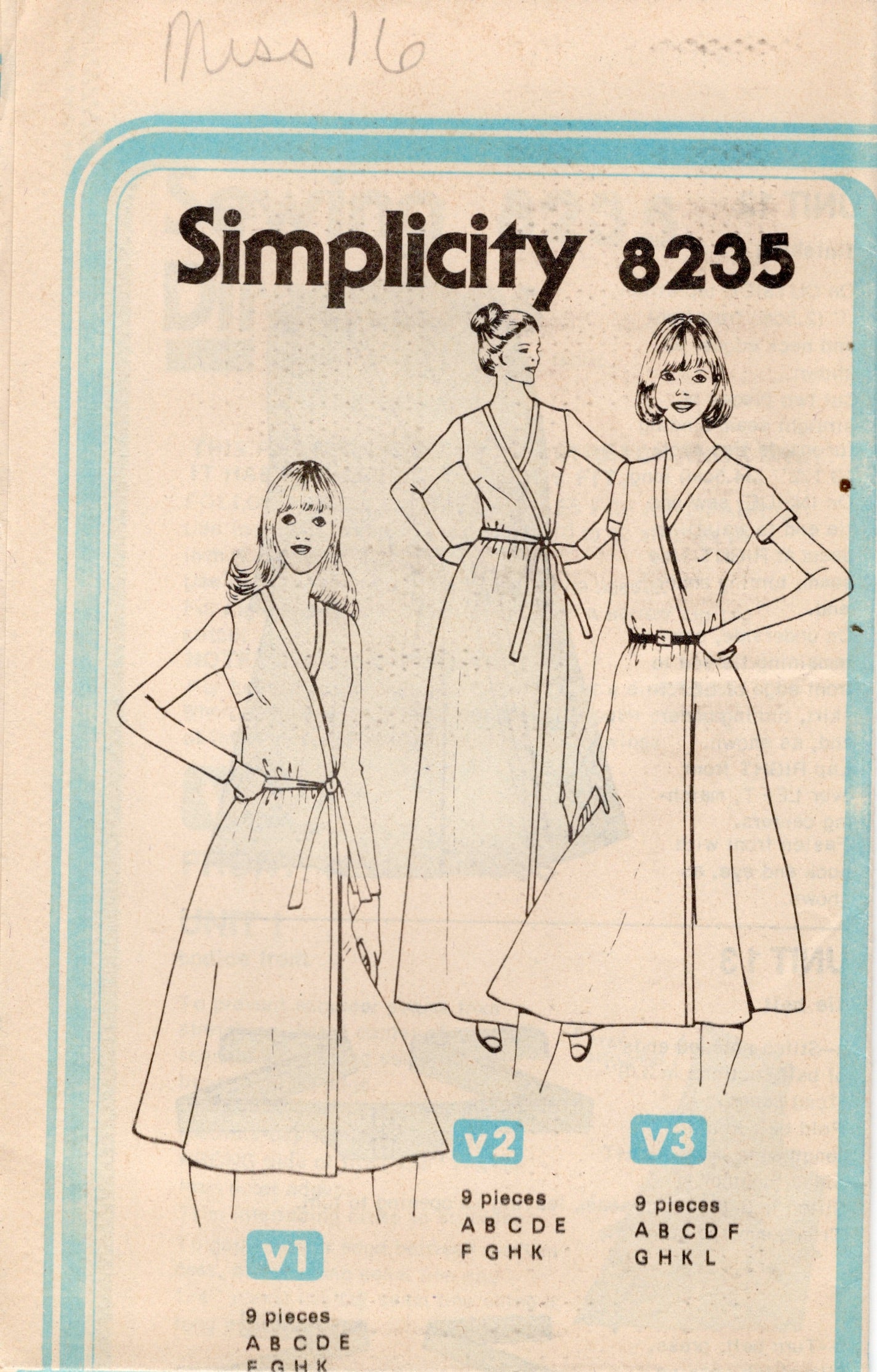 1970's Simplicity Front Wrap Dress pattern - Bust 38" - No. 8235 is backordered and will ship as soon as it is back in stock.