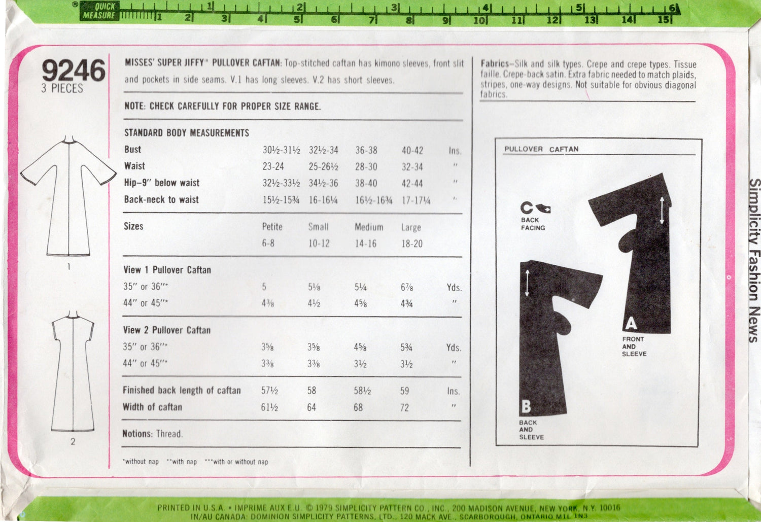 1970's Simplicity Super-Jiffy Caftan Dress Pattern - Bust 36-38" - No. 9246 is backordered and will ship as soon as it is back in stock.