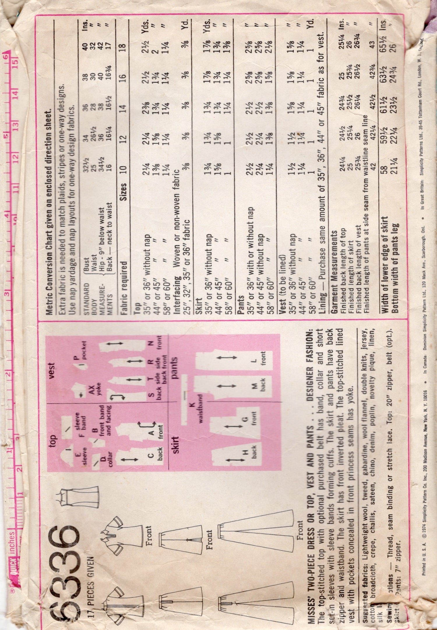 1970's Simplicity Tunic, A-line Skirt and Pants Pattern - Bust 40" - No. 6336 is backordered and will ship as soon as it is back in stock.