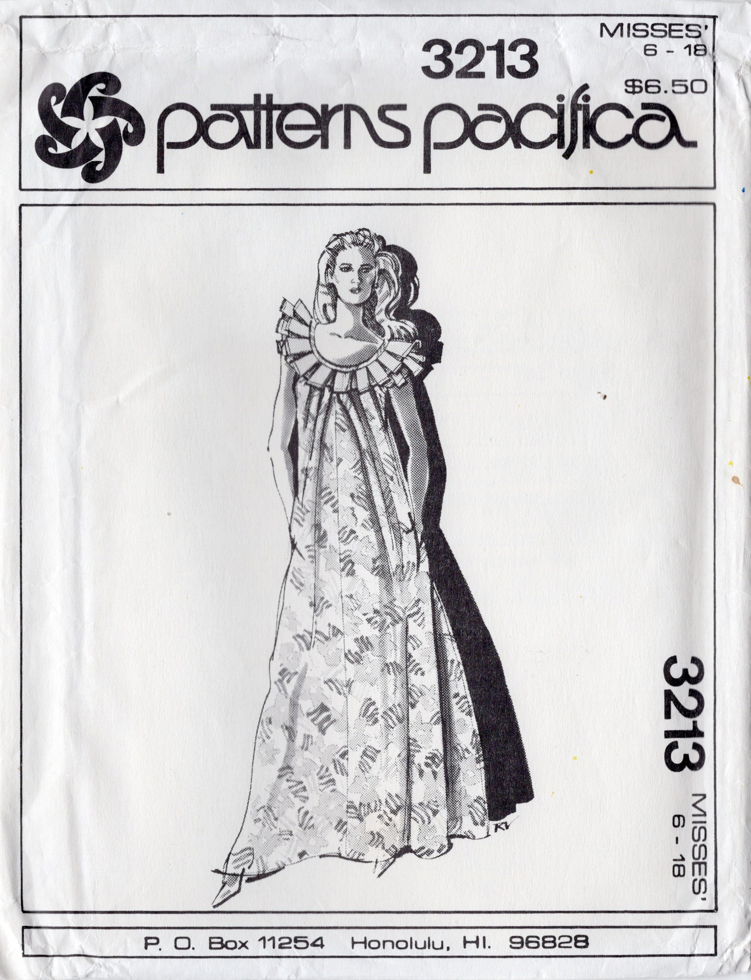 1980's Patterns Pacifica MuuMuu Dress with Pleated Collar Pattern - Bust 30.5-40" - No. 3213 is backordered and will ship as soon as it is back in stock.