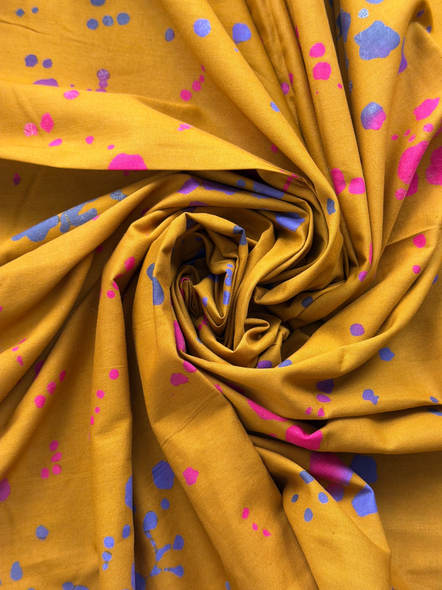 Modern Golden Rod Yellow with Pink and Purple Splatter Fabric - P258
