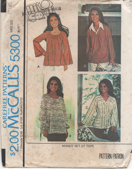 1970's McCall's Marlo's Corner Blouse Pattern - Bust 30.5-31.5" - no. 5300