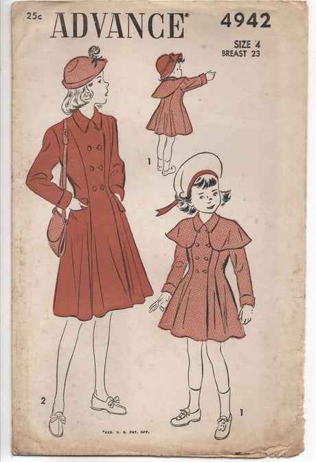 1940's Advance Girl's Princess Coat with Cape - Breast 23" - UC/FF - No. 4942