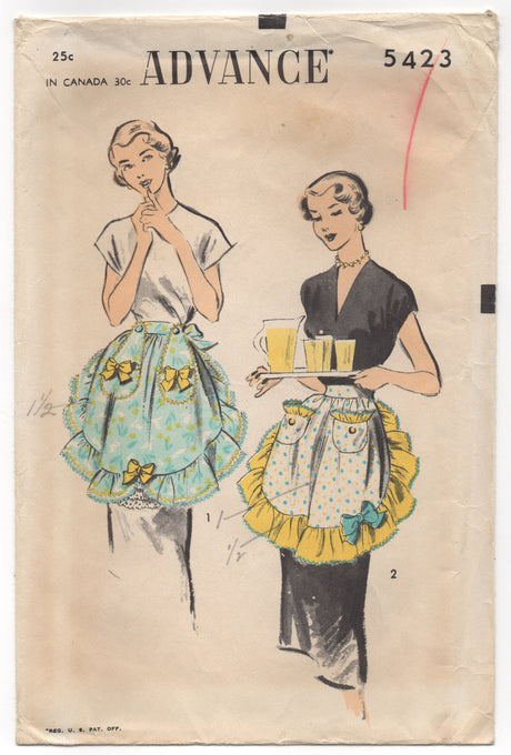 $695Unit price /Unavailable1950's Advance Half Apron with Ruffles and Pockets - One Size - No. 5423