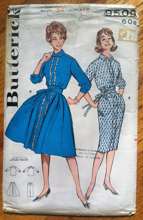 Very low stock (1 unit)$895Unit price /Unavailable1960's Butterick Wiggle and Rockabilly Dress Pattern - Bust 34" - no. 9509