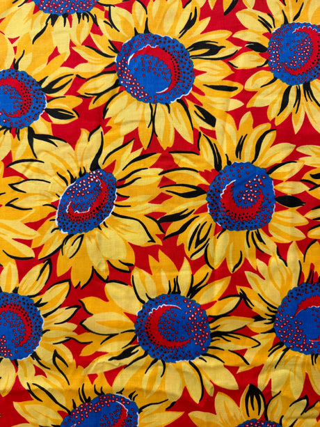 1980’s Yellow and Red Sunflower Print Cotton Blend Fabric - P257