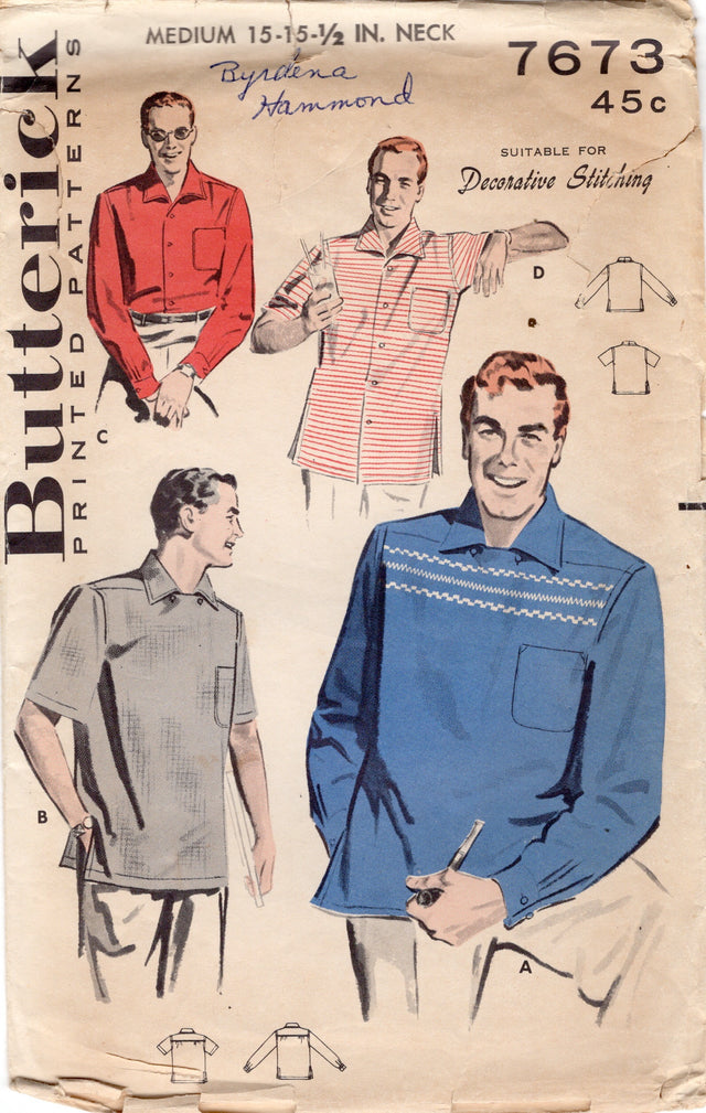 1950’s Butterick Men’s Button up or Yoked Shirt Pattern- Chest 38 - 40” - No. 7673 is backordered and will ship as soon as it is back in stock.