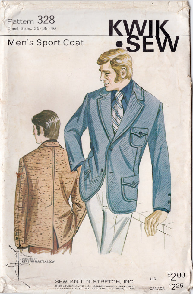 1970's Kwik Sew Men's Sport Coat Pattern - Chest 36-40" - No. 328 is backordered and will ship as soon as it is back in stock.