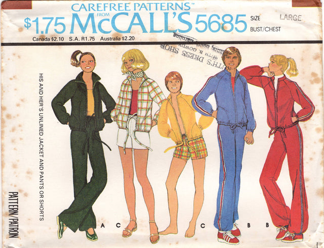 1970's McCall's Unlined Jacket and Wide Leg Pants Athletic Set pattern - Chest 30.5-31.5" - No. 5685 - Chest 30.5-31.5" is backordered and will ship as soon as it is back in stock.