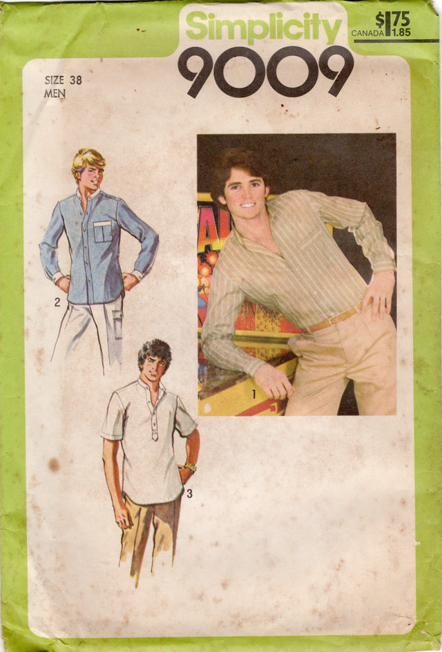 1970's Simplicity Men's Button Up or Pullover Shirt - Chest 38" - No. 9009 is backordered and will ship as soon as it is back in stock.