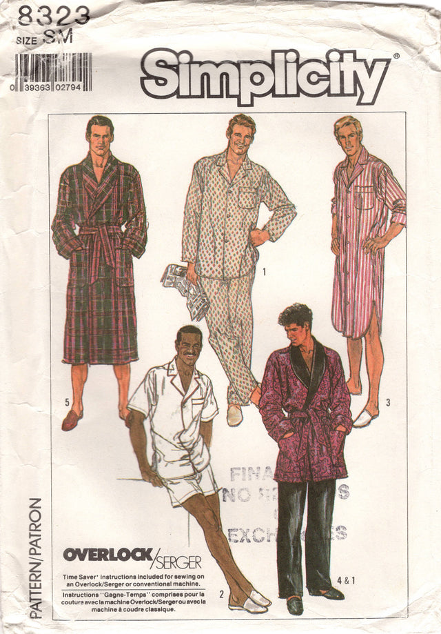 1980's Simplicity Men's Robe and Pajama Pattern - Chest 34-36" - No. 8323 is backordered and will ship as soon as it is back in stock.