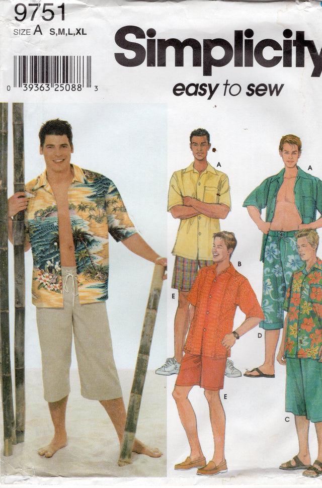 2000's Simplicity Men's Button Up Shirt and Shorts in Two Lengths Pattern - Chest 34-48" - No. 9751 is backordered and will ship as soon as it is back in stock.