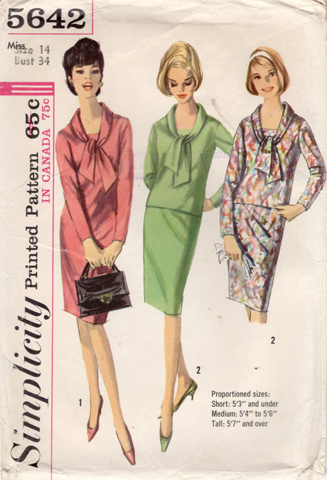 Very low stock (1 unit)$695Unit price /Unavailable1960's Simplicity One Piece or Two Piece Dress Pattern with Tie Collar - Bust 34" - No. 5642