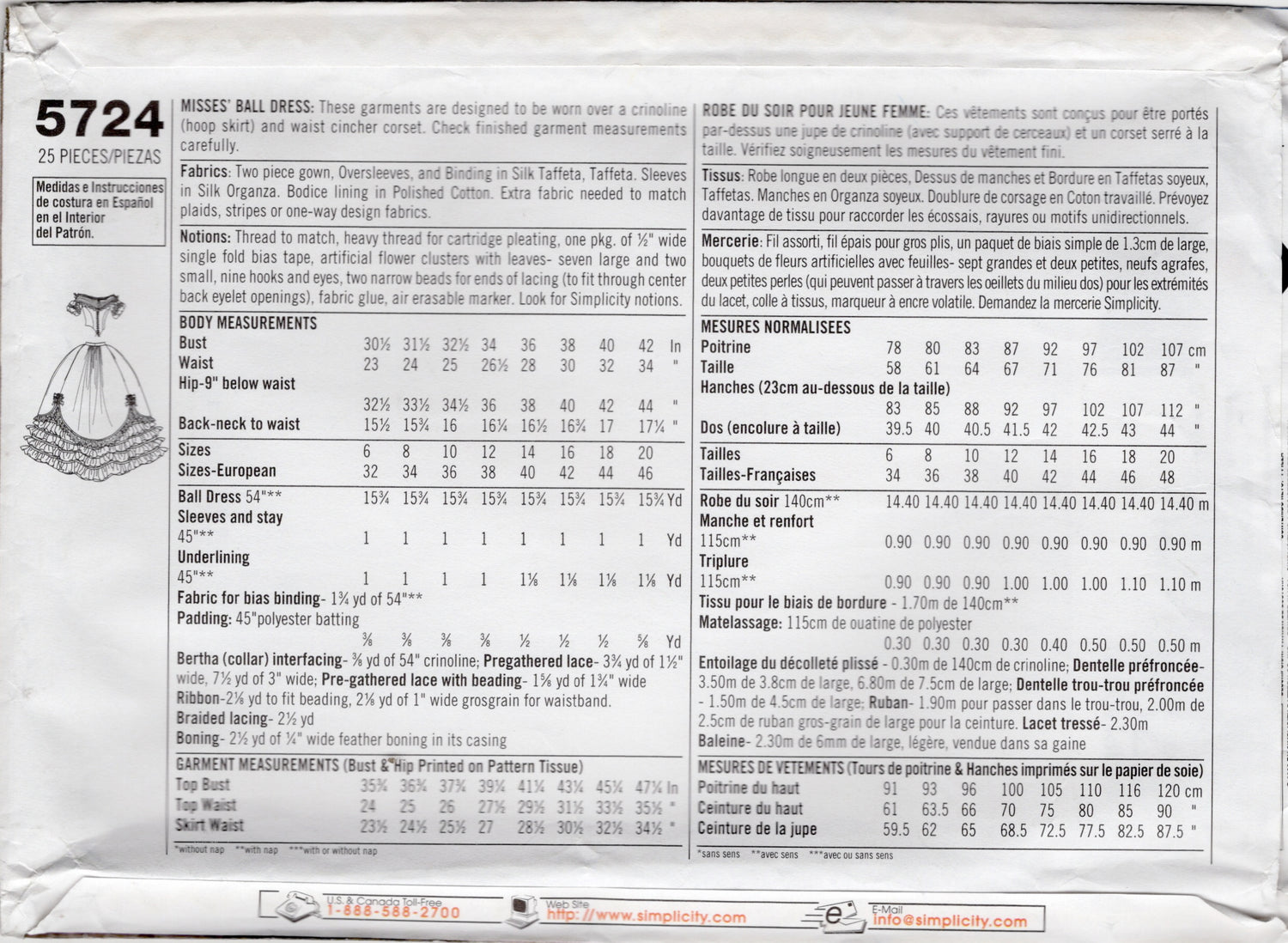 2000's Simplicity Fashion Historian Costume Ball Gown Pattern - Bust 30.5-34" - No. 5724