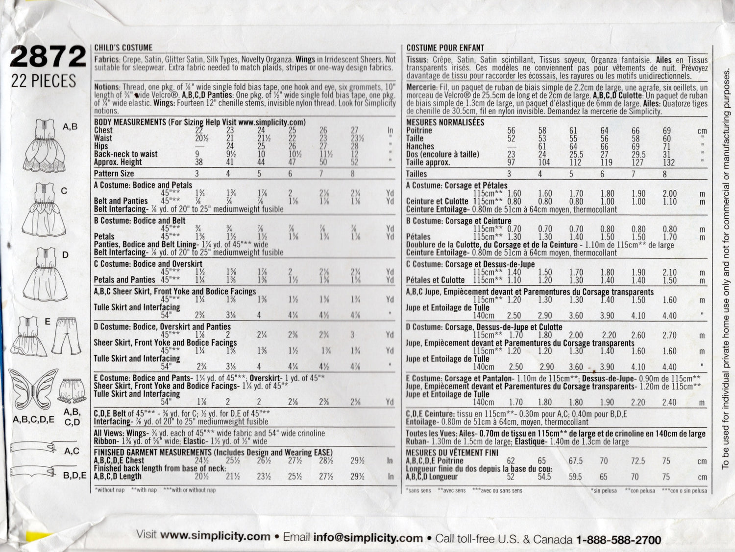 2000's Simplicity TInkerBell Disney Fairies Costume Pattern - Chest 22-27" - No. 2872 is backordered and will ship as soon as it is back in stock.