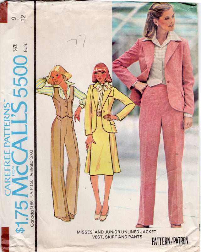 1970's McCall's Unlined Jacket, Vest, Skirt and Pants pattern - Bust 32" - No. 5500 is backordered and will ship as soon as it is back in stock.