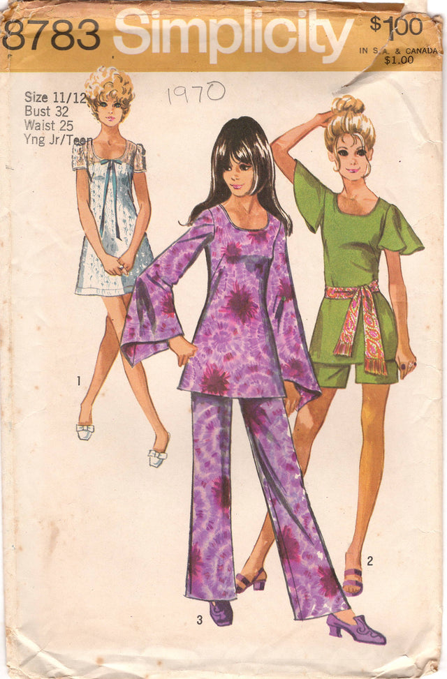 1970's Simplicity Mini Dress with Large Sleeves and Pants or Shorts - Bust 32" - 8783 is backordered and will ship as soon as it is back in stock.