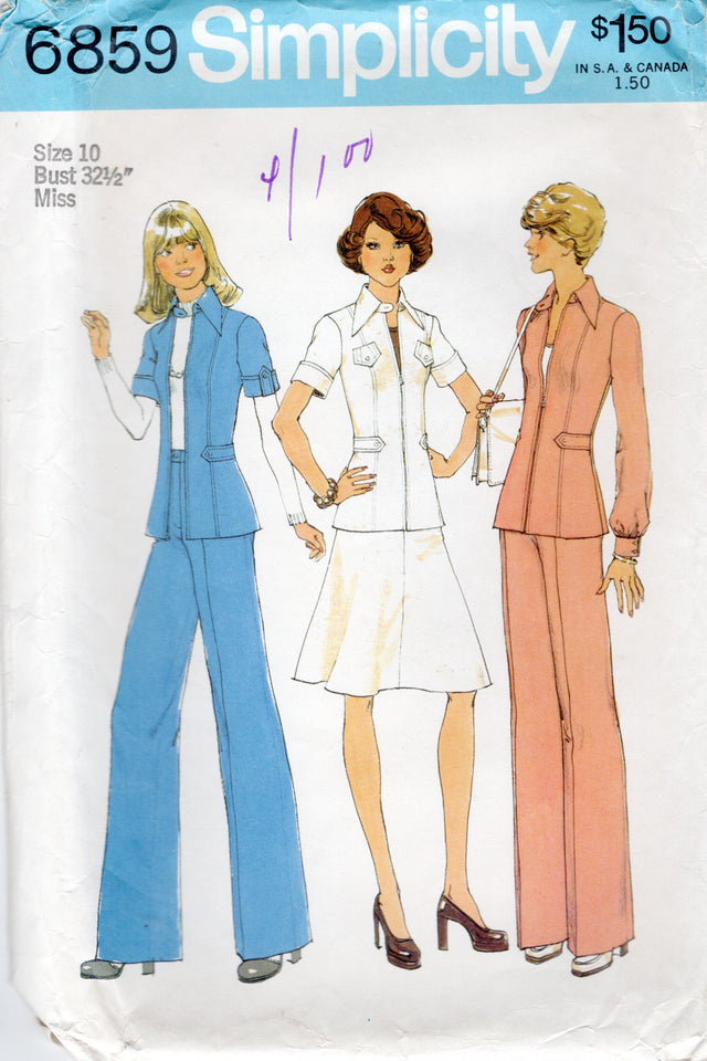 1970's Simplicity Unlined Jacket, A-line Skirt and High Waisted Pants Pattern - Bust 32.5" - No. 6859 is backordered and will ship as soon as it is back in stock.
